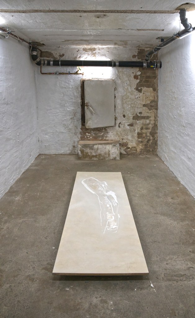 Berliner Untergrund: Bodenplatte | Limestone on Chalk on Wood | 200 x 70 cm | Installation view: culterim gallery